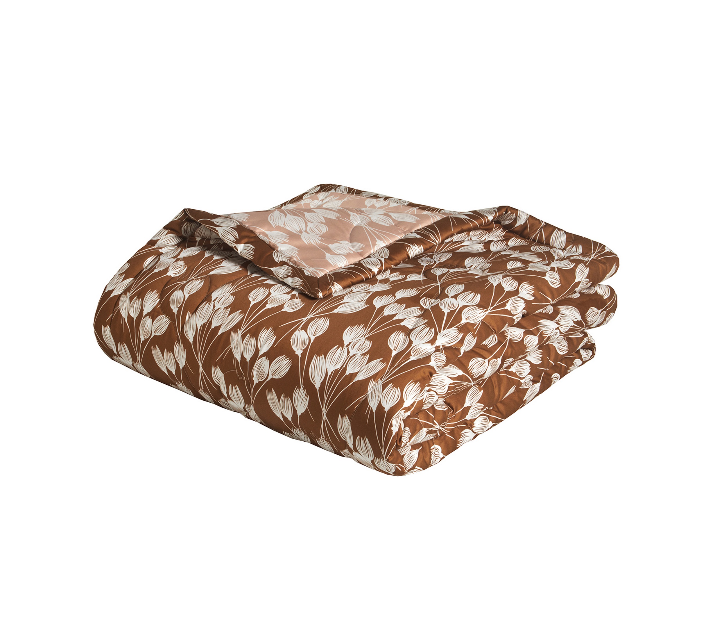 Couvre lit matelassé 250/250 cm Satin 100% coton peigné longues fibres 120 fils/cm² . ENVOLEE Cuivre séduit grace à l’élégance du double imprimé, pour un lit qui se métamorphose selon l’humeur. Une envolée de tulipes stylisées s’épanouit sur un satin de coton au toucher soyeux. Chaque face de la parure révèle une variation de couleur, jouant le contraste subtil avec le cuivre chaleureux. Le motif, tout en légèreté, insuffle une dynamique florale et contemporaine à la chambre.ENVOLEE est la parfaite alliance entre style et confort, pour une chambre à l’allure unique.
