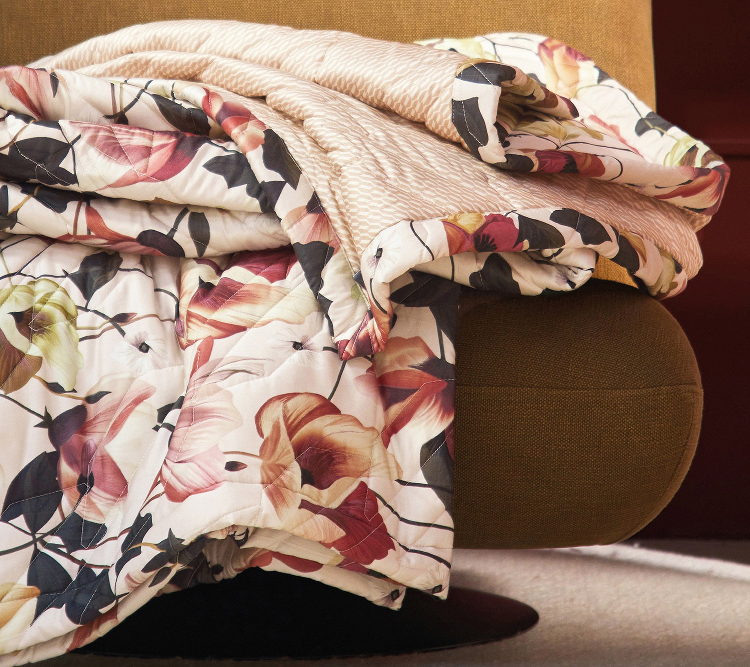 RHAPSODIE Aubépine ce couvre-lit matelassé célèbre l'éclat des fleurs avec une élégance moderne. Imprimé sur un satin 100% coton, ultra doux et luxueux, elle offre un motif floral vibrant et expressif, transformant votre chambre en un jardin intérieur. La version Aubépine, plus douce et lumineuse, évoque une atmosphère de sérénité dans un esprit boudoir. Les taies et le drap plat sont sublimés par une finition bourdon délicate, soulignant le raffinement de cette parure. RHAPSODIE est une ode à la beauté florale, offrant un confort luxueux et un style distinctif pour une chambre qui inspire l'émerveillement. Le couvre lit RHAPSODIE est molletonné, rembouré en fibre 100% polyester et piqué. Le couvre lit RHAPSODIE est disponible dans les dimensions standards 250 x 250 cm et 270 x 250 cm. Il n'est pas réalisable en sur-mesure.