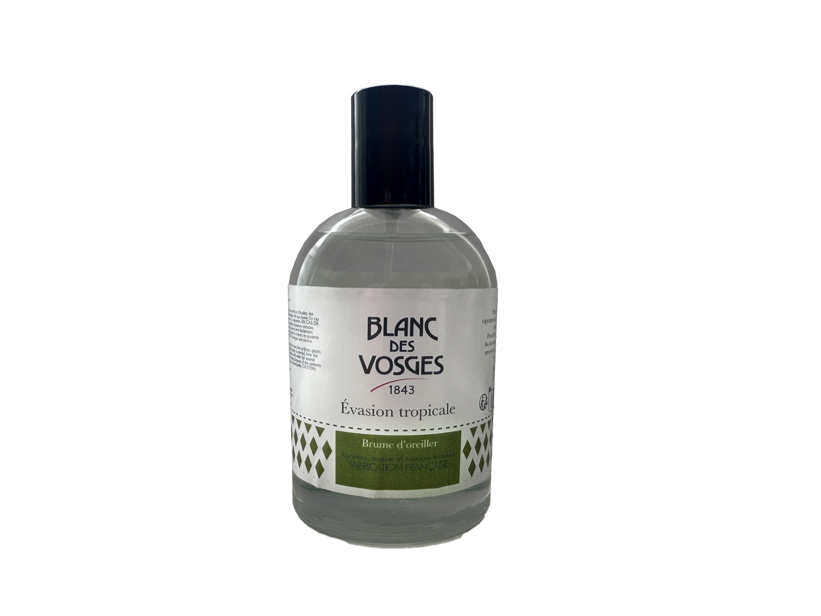 Brume d'oreiller 100ml. Craquez pour la brume d'oreiller EVASION TROPICALE un parfum d'humeur franche et boisée, un écrin protecteur qui parle d'évasion, de voyage au coeur de soi et de sérénité. Vaporisez légèrement votre linge de maison avec la brume d'oreiller EVASION TROPICALE et laissez vous ennivrer par les notes boisées et aromatiques du citron, de la bergamote, de la violette et du cèdre.