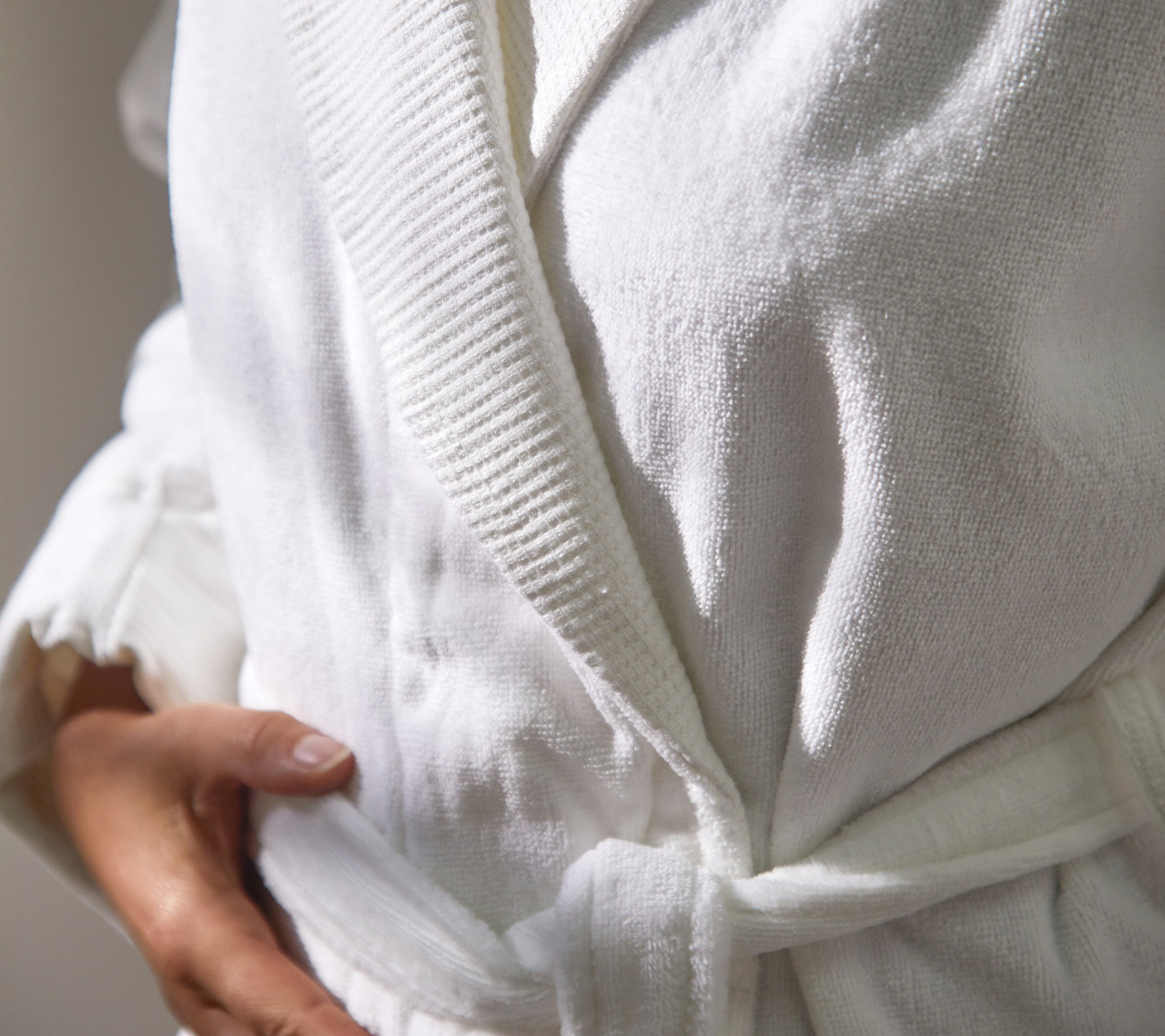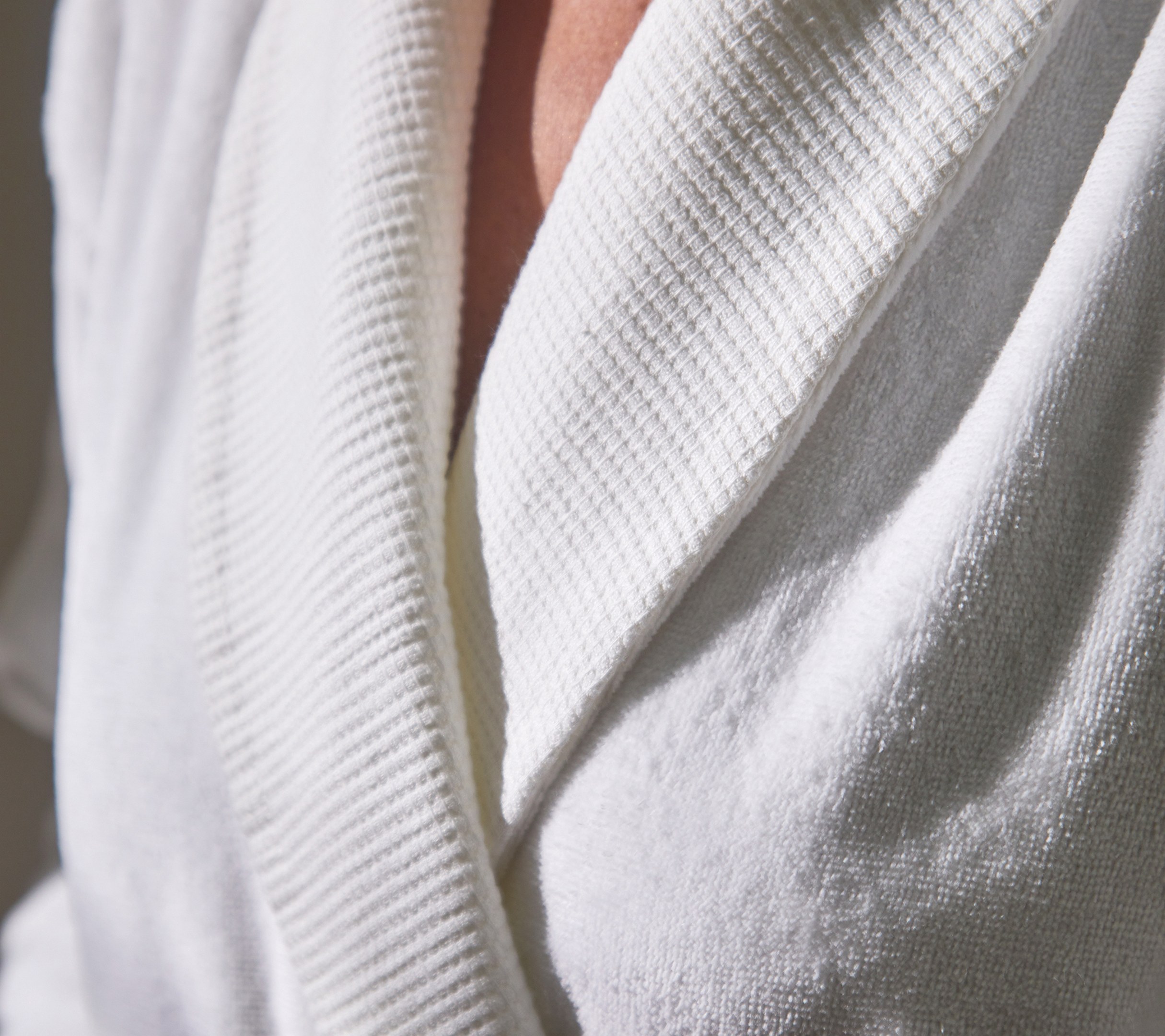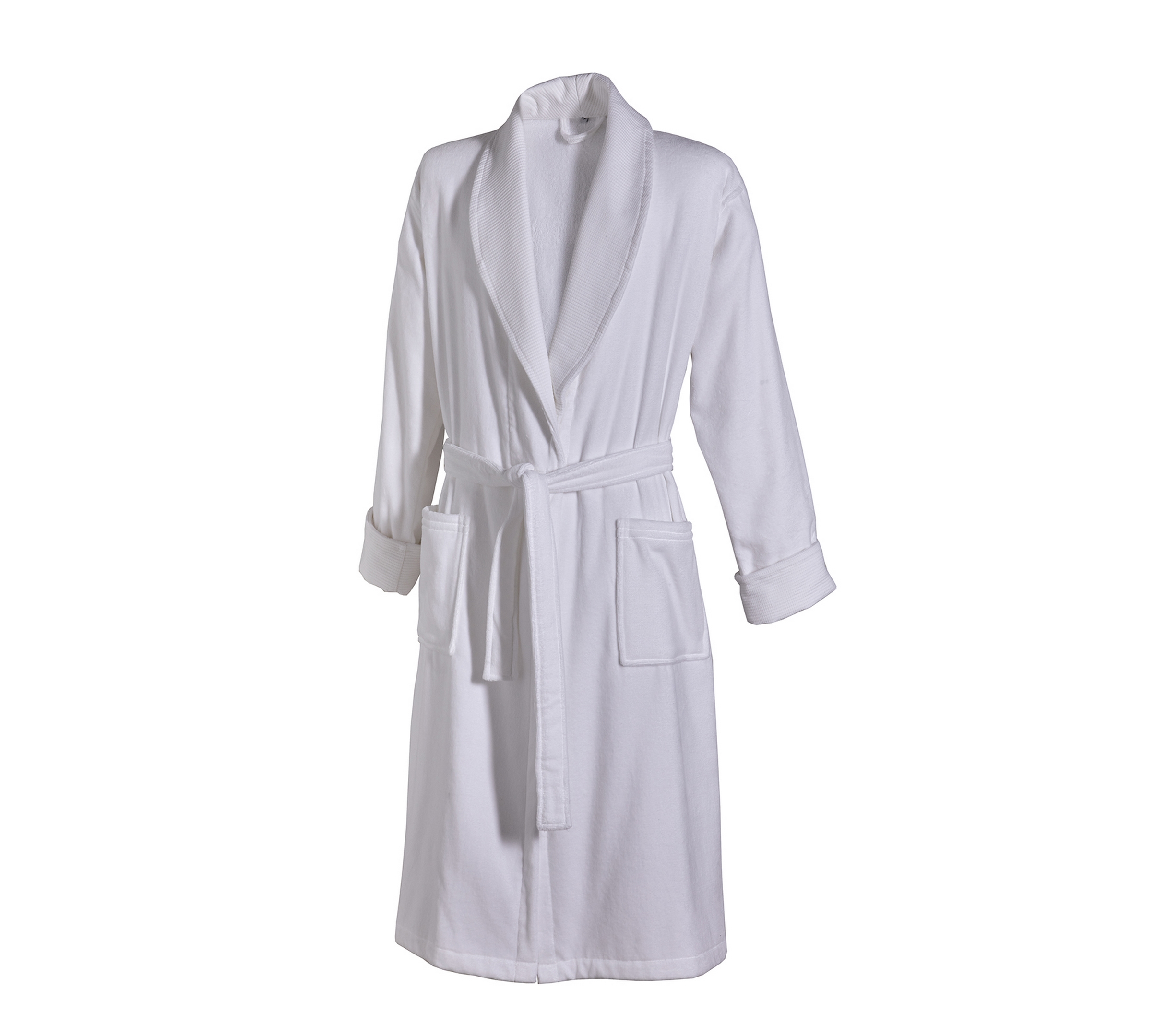 Glissez vous dans l'élégant peignoir PALAZZO Blanc de Blanc des Vosges. Réalisés en bouclette éponge 100% coton 400 gr/m² chic et hautement absorbant. Vous êtes comme dans les plus beaux palaces.