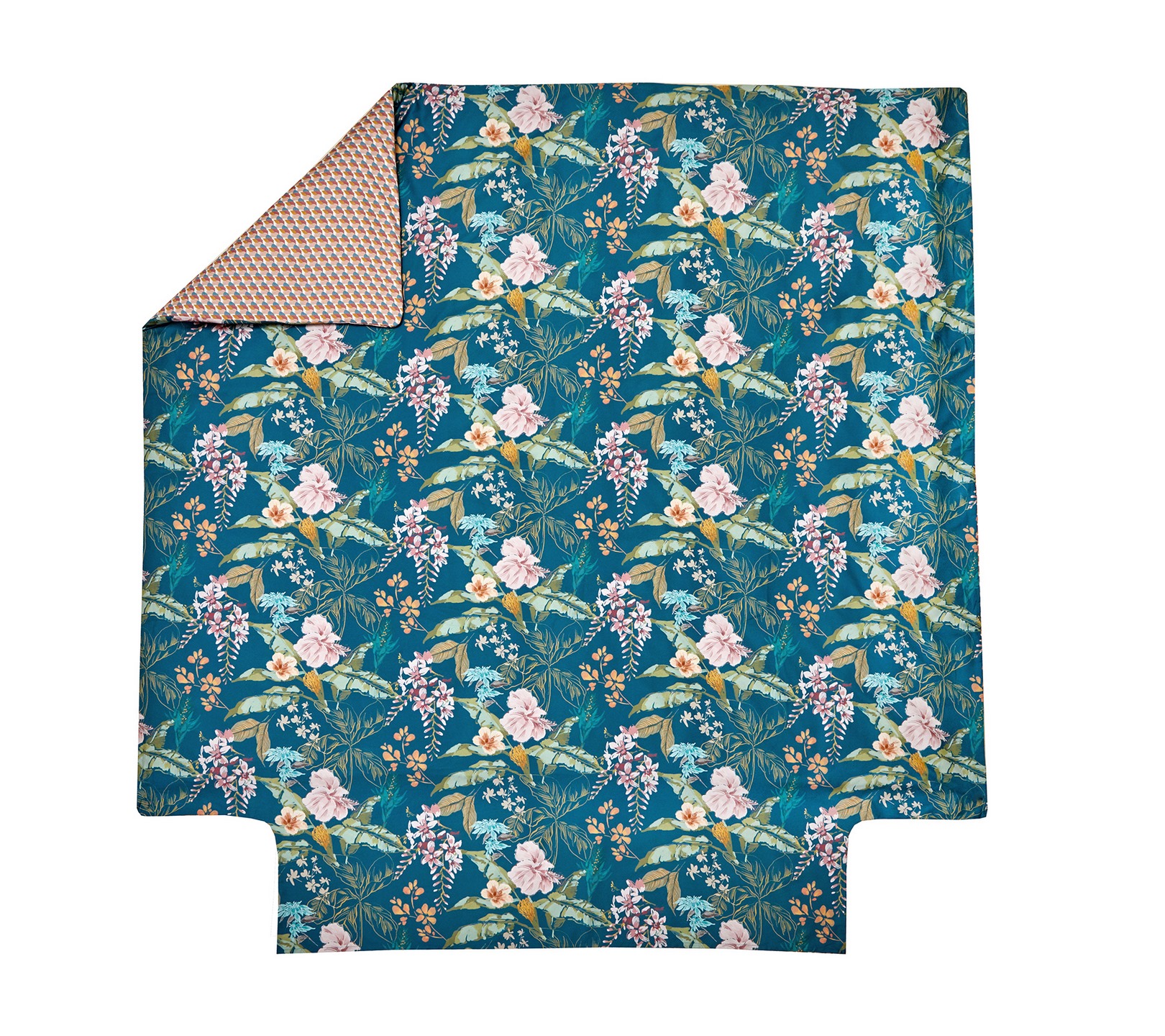 • Housse de couette : Face principale imprimée de fleurs exotiques et dos imprimé avec un jeu de motifs géométriques crayonnés, finition rabat cheminéee