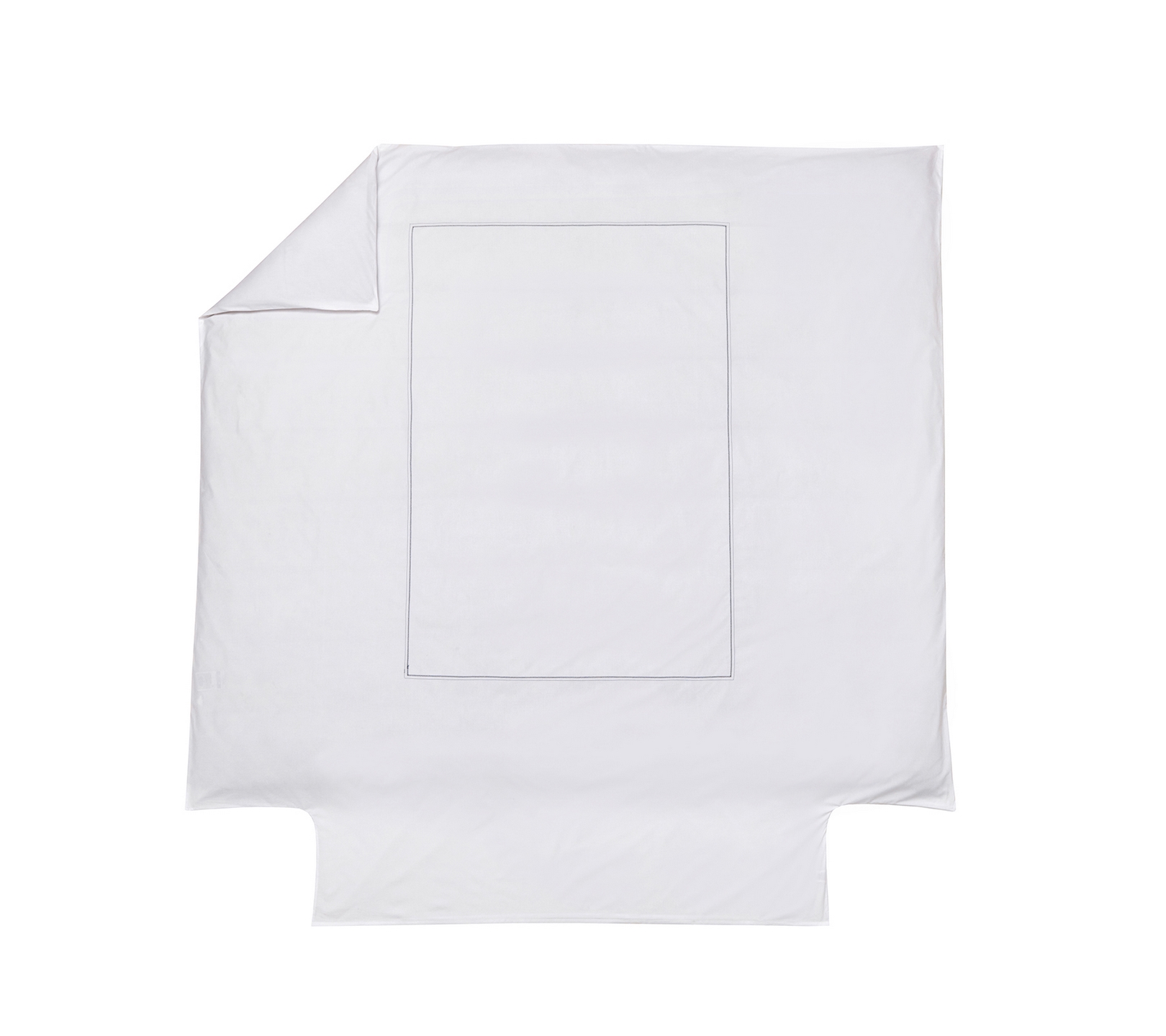 • Housse de couette : face principale ornée de jour perforé en rectangle sur le dessus, face arrière en percale peignée longues fibres blanche. Finition rabat cheminée
