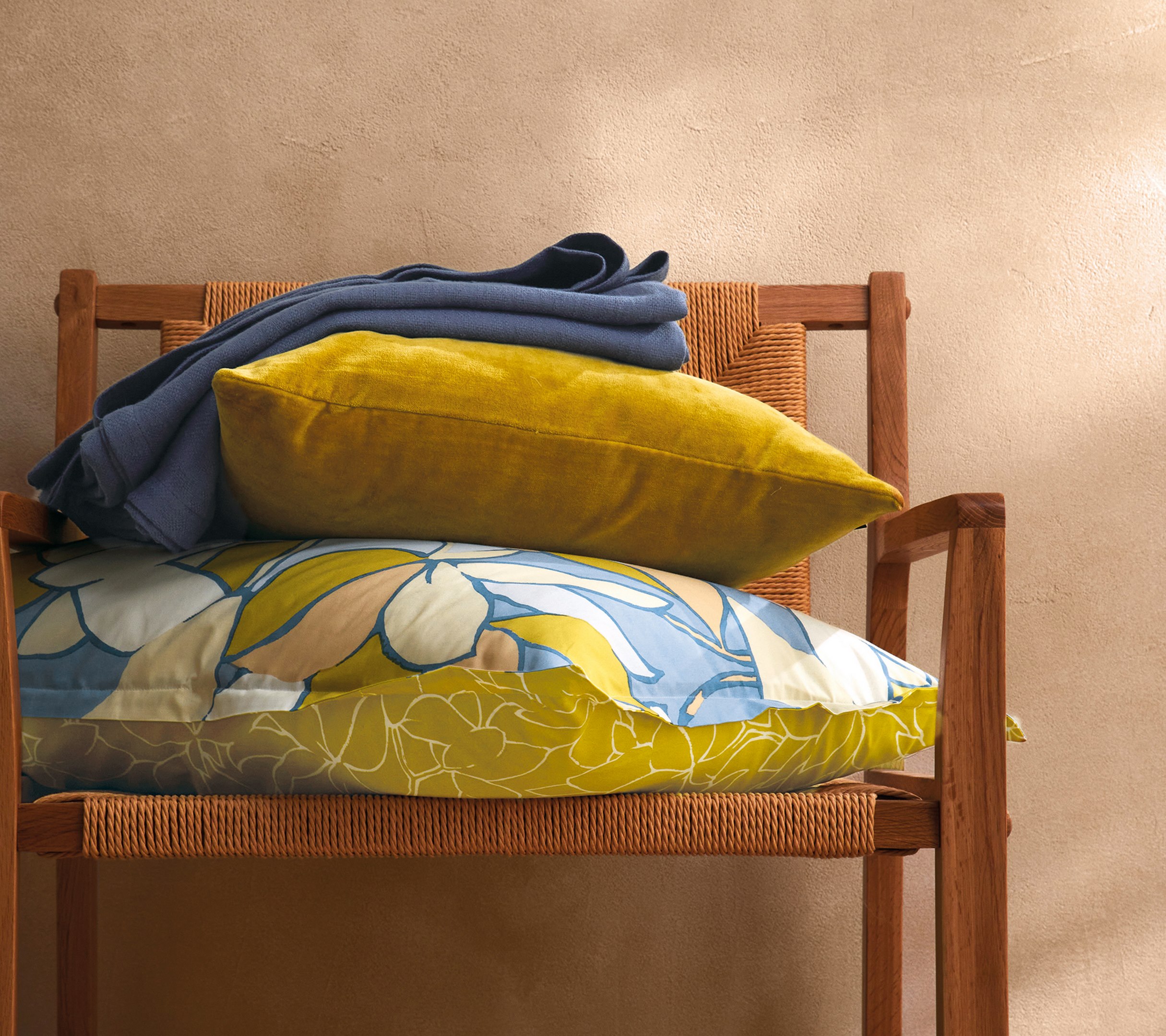 Fabriqué à Gérardmer, sur une percale de coton au tissage extrêmement fin et serré, 80 fils/cm², la housse de couette Utopia est composé d'un ensemble de motifs floraux colorés sur l'avant et monochrome jaune sur l'arriére. Les motifs se déclinent sur la housse de couette avec un rabat cheminée.