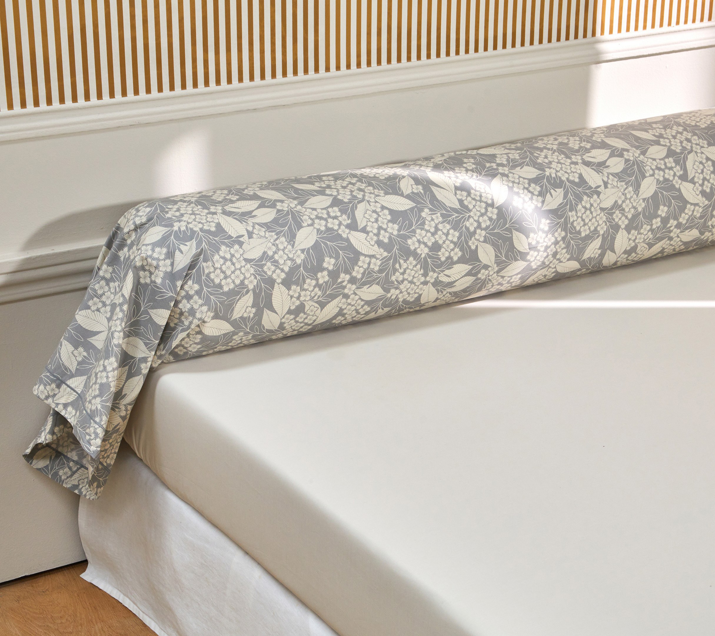 Traversin 90/190 cm Percale 100% coton peigné 80 fils/cm² Inspirée par le charme des maisons de campagne provençales, les taies de traversin BASTIDE Soleil évoquent une élégance naturelle et intemporelle. Ses motifs floraux stylisés, inspirés des jardins méditerranéens, créent une atmosphère douce, chaleureuse et apaisante dans la chambre.